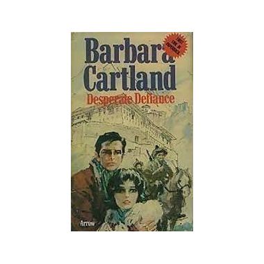Desperate Defiance by Barbara Cartland, 1976 paperback Ed, Arrow imprint. In good condition for its age. No loose pages, a pen mark on the cover, and on the title page. A small tear on the back cover.
