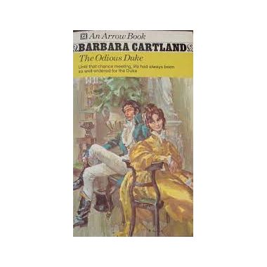 The Odious Duke by Barbara Cartland, 1974 paperback Ed, An Arrow Book imprint. An initial in pen on the first page and black marker over price on back cover. Good reading condition, no loose pages.