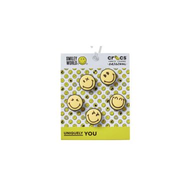 Put your own unique touch to your shoes with this 5 pack of Smiley World Jibbitz charms. The perfect addition to your favourite pair of slides or clogs.