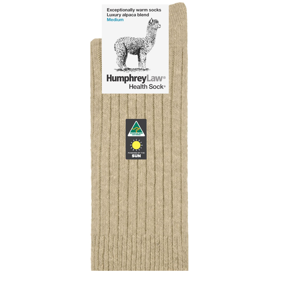 An exceptionally warm luxury sock made with a blend of alpaca and wool. Alpaca fibre is soft, supple and smooth and contains microscopic air pockets which act as insulators keeping in the warmth provided by the wool. A Health Sock® with no tight elastic top but note as alpaca is a luxury fibre these socks are not recommended for high abrasion use such as work boots. 60% Alpaca, 20% Wool, 17% Nylon, 3% Lycra.