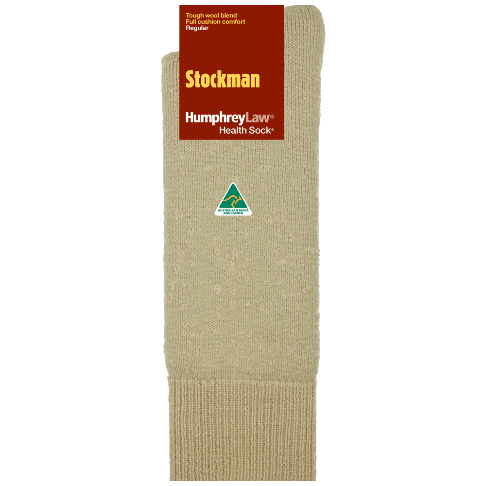 A hardwearing thick Merino wool sock, an excellent all-purpose sock for work or recreation. This sock has a resilient pure wool terry-knitted cushion sole inside as wool is the best fibre for padding as it will not lie down and die like synthetic fibres do. This is a good all-purpose sock for work or recreation. A Health Sock® with no tight elastic top. 77% Wool, 23% Nylon.