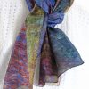 100% Pure Silk Tabbi Scarf 150cm x 50cm The Tabbi Scarf is 5mm (22gms per square metre) in the silk weight scale, has a plain weave and is feather light and sheer whilst still maintaining the strenth and lasting qualities of pure silk. Included with your scarf is a Designed Bluyonda box with magnetic lid / tag with the story about the image / tag with history of Silk and Artist's resume