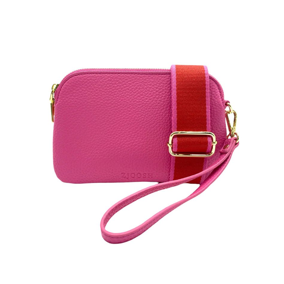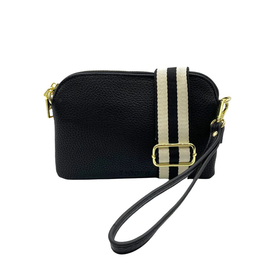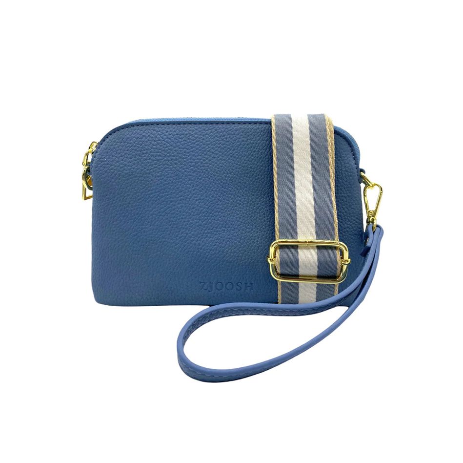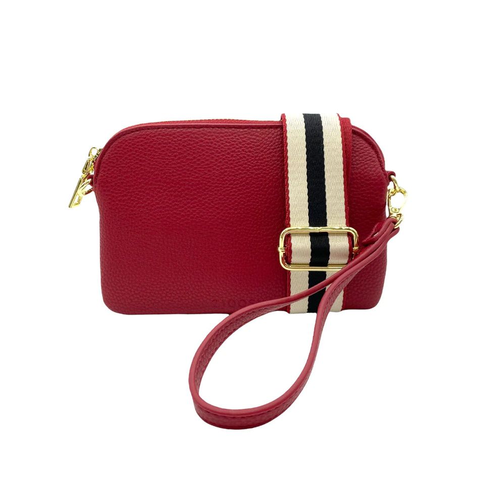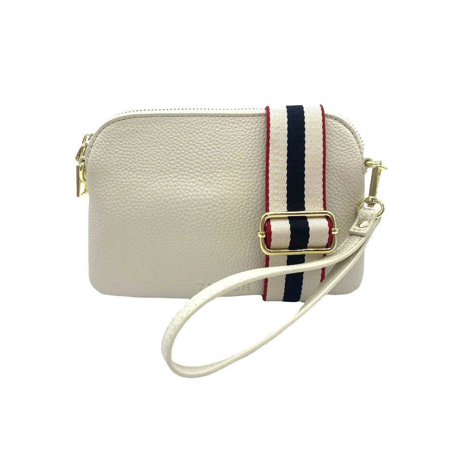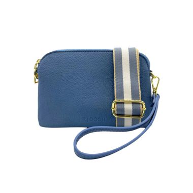 Intended for our junior customers, the Missy Hugo is just the right size to carry a phone, lipgloss, cards and keys. The fun webbing strap gives it a super sporty vibe, or use as a clutch with the handy detachable wristlet.