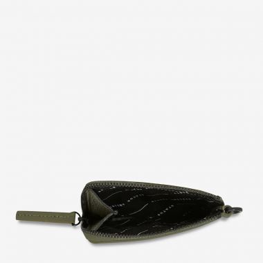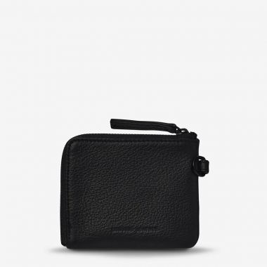 - Matte black zipper running half way round pouch with internal gusset for secure wide opening functionality