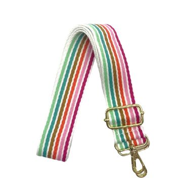 With beautiful gold hardware, the strap clips easily onto any bag. Crafted from a sturdy cotton and polyester blend, this webbing strap is super strong.