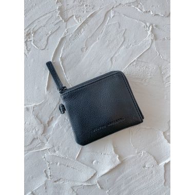 - Matte black zipper running half way round pouch with internal gusset for secure wide opening functionality