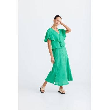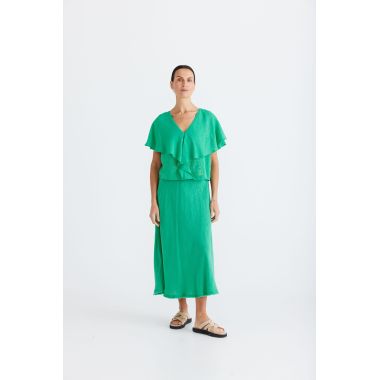 • EXAGGERATED FRILL NECKLINE
