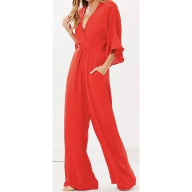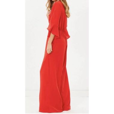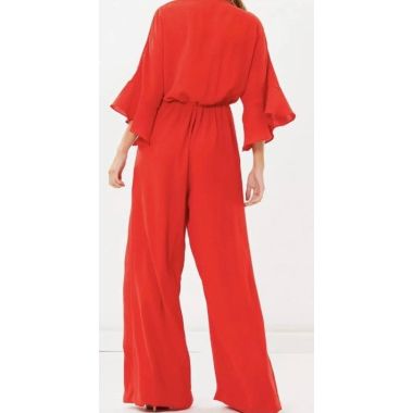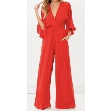 Step out in The Marta Jumpsuit. Featuring wide leg pants, deep V-neckline, flared split sleeves & detailing at the waist, this piece is designed to flatter the body and is sure to turn heads at your neck event.