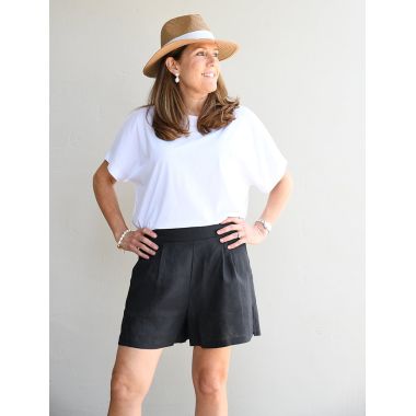 Our Annie shorts will become your wardrobe staple this season. Just the right length and a box pleat on the front make these shorts incredibly flattering. The elastic back means that these shorts will be super comfortable on a range of body shapes from petite to curvy.