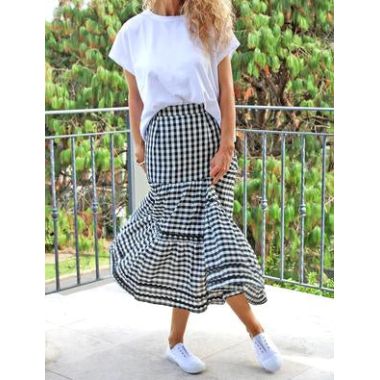 The Zadie Skirt is all about confident fun. It’s bold gingham checks in 3 tiers with ric rac braid detailing give it a folky vintagey feel. Crafted from a beautiful blend of linen and cotton, the Zadie is a sturdy piece which will stand the test of time. Wear with a plain white Tee or any of the Zjoosh white shirts for a clean crisp outfit which will make you feel amazing each time you wear it.