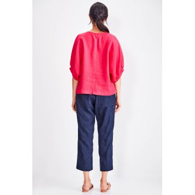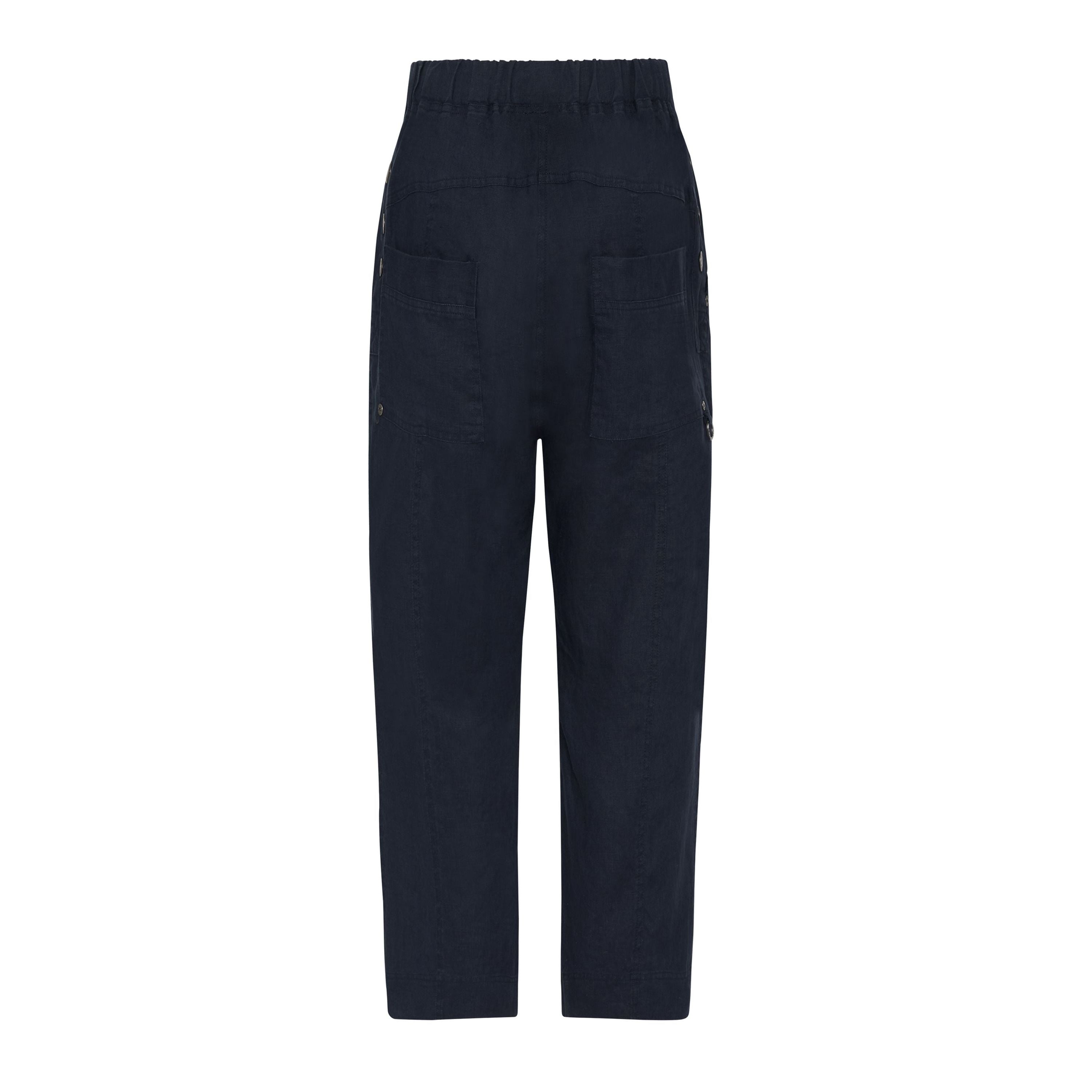 100% Linen straight leg capri featuring panel detail through the leg, side pockets, soft elasticated back waist and front ties. Signature Verge hardware detail on pockets. The Flipside capri falls to lower calf.
