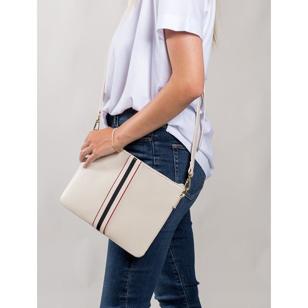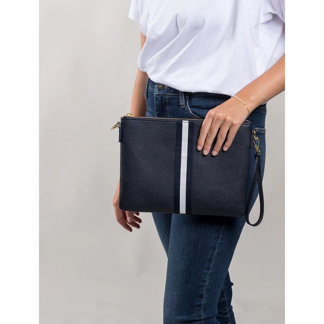With a strong zipper closure and internal pockets the Rachel also has a handy wristlet leaving you hands free whilst shopping or out drinking cocktails. A perfect gift for a girlfriend or gift to self. A simple white T and jeans outfit is elevated to sporty chic style with this statement piece.