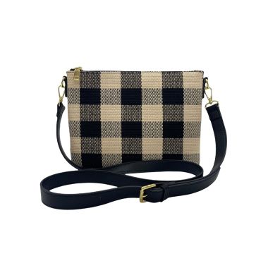 The Rachel clutch is the perfect handy clutch to stow your belongings for your day or evening out. Crafted from a high quality thick woven fabric in a sharp black and white check, this clutch makes a a super strong statement.
