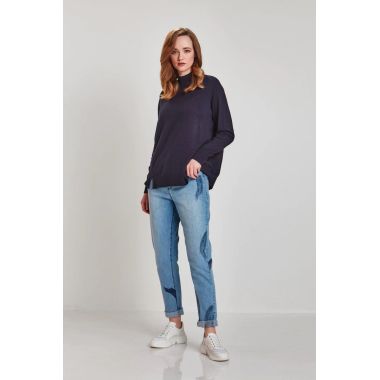 One of our favourite yarns - Cotton/Cashmere in a relaxed silhouette that falls away from the body to below the hip. The high- neckline bridges the gap between a crew and turtleneck for added warmth. Available in 3 colours.