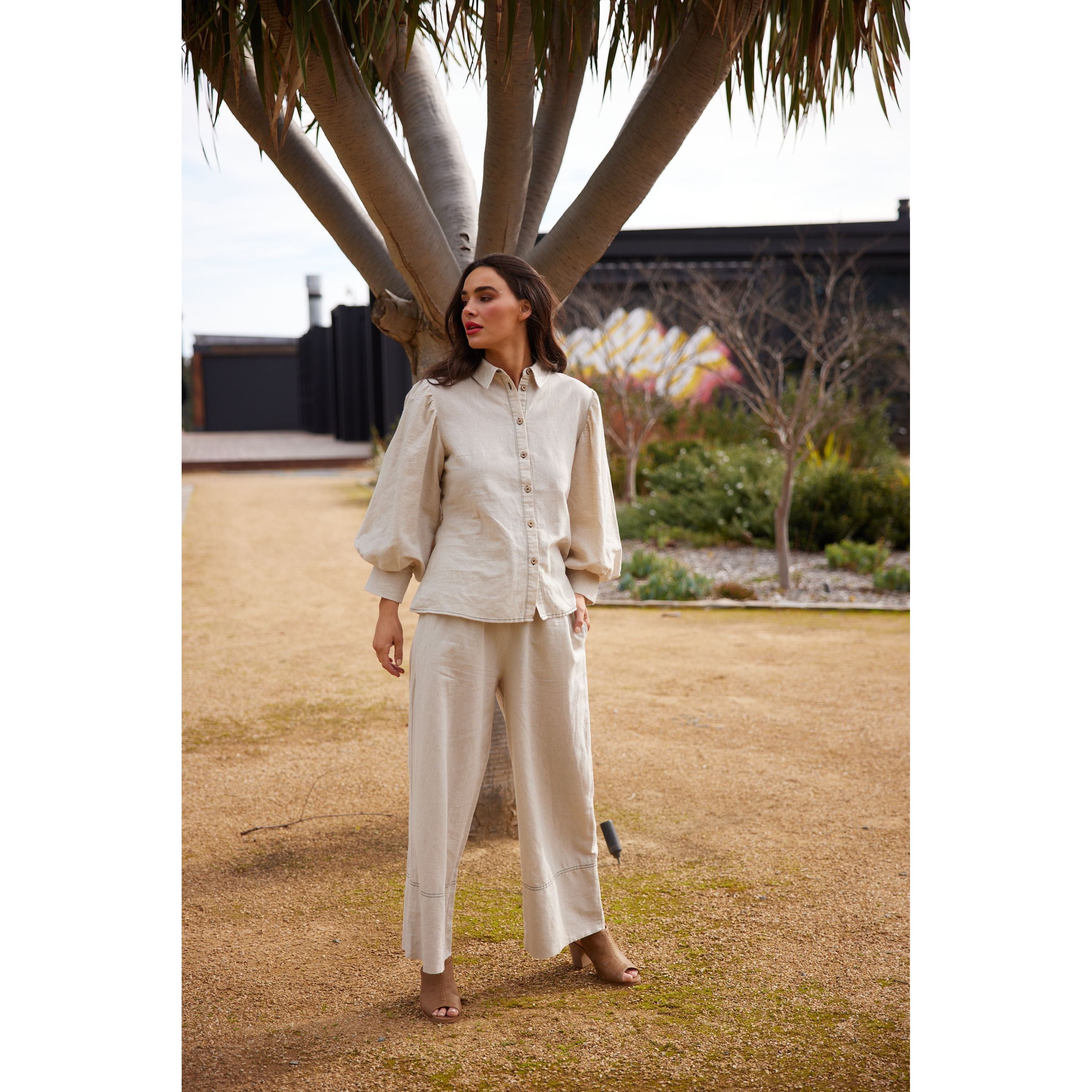 Add a dose of glamour to your desk-to-dinner wardrobe with the all new Lift Me Up Shirt. Beautifully crafted from a linen blend, this otherwise classic button down is balanced by structural balloon sleeve to create a striking silhouette. This wearable on-trend piece will take your look to a new level of sophistication.