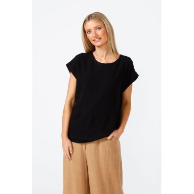 Back to basics with the Percy Top. The perfect little tee you'll be wearing over and over all year long! Its flattering cap sleeve and relaxed fit will leave you wanting it in every colour.