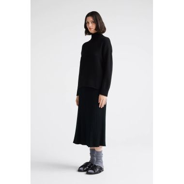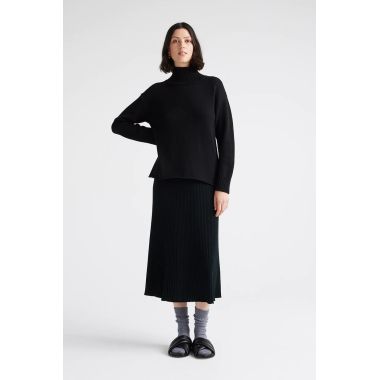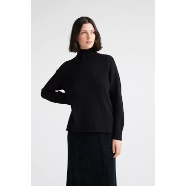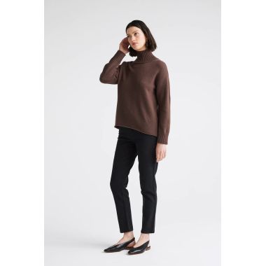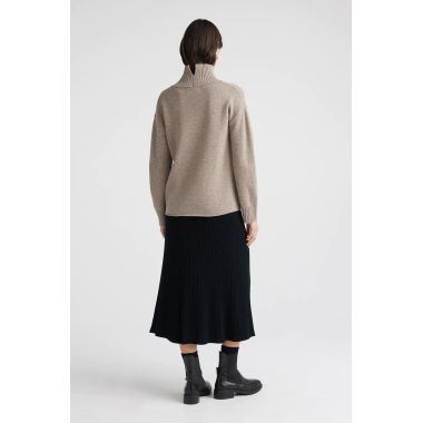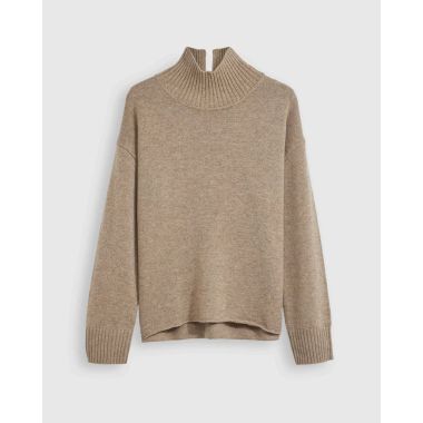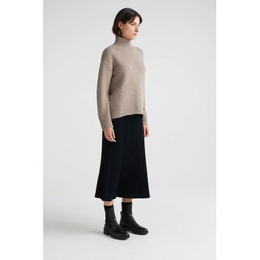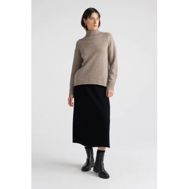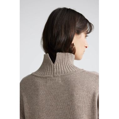 Our Funnel Neck wool jumper features a boxy fit and a clean, cast off hemline. It has been finished with rib trims and a small split in the back collar for a both warmth and comfortable wearability.