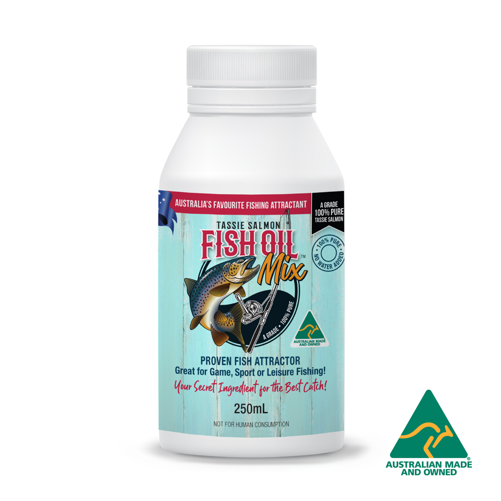 If you are looking to catch more fish, then our Tassie Salmon Fish Oil Mix is the perfect fishing attractant that professional Anglers like to keep secret. Our Fish Oil Mix can mean the difference between going home empty or a bumper catch. Whether you’re new to fishing or a seasoned pro, understanding fish and their favourite food is a must to catching them! Tassie Salmon Fish Oil Mix gives off a distinctive smell and taste, making it irresistible to all types of fish!