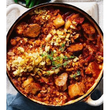 A classic French braised dish, with chicken, sausage, tomato, beans and more vegies than in most crisper drawers. Serve with your favourite rice, pasta, salad, vegetables or crusty bread.