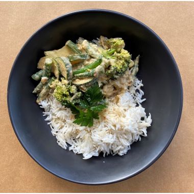 Coconut milk and loads of green vegetables. Serve with your favourite rice, pasta, salad, vegetables or crusty bread.