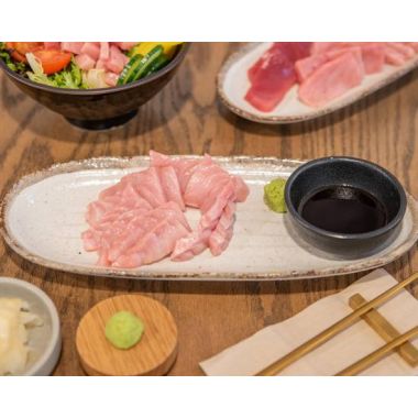 From the tuna’s belly-this marbled “wagyu of the sea” is sweet and rich. 100g of otoro sashimi. Ten pieces.