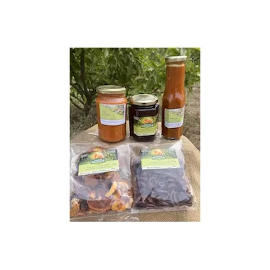 How about this homemade combo to brighten up your pantry or to make that unique gift pack! There's the authentic Green Tomato sauce made from our farms biodynamic tomatoes and spiced up with an array of spices and fresh herbs. A Tomato Pasta sauce increases the versatility of this trio with its richer and smoother tomato flavour which can be used to flavour anything; especially a great sole base for pasta. The plum jam sweetens up this hamper as nothing is better than homemade jam on scones, used in baking or on warm toast. The old wood-fired stove is fired up to cook the sauces and jams on the stovetop for several hours, following the recipes my mother mastered over many years of experimentation in the kitchen. Our dried fruits are created from delicious fresh fruits we grow here on our biodynamic orchard. Hand-picked when ripe, the fruits are sliced by hand and dried in the summer sun or in our Solar Dehydrator. Enjoy as a healthy snack and what better way to impress than have organic dried fruit medley on a cheese platter. Enjoy the produce hamper.