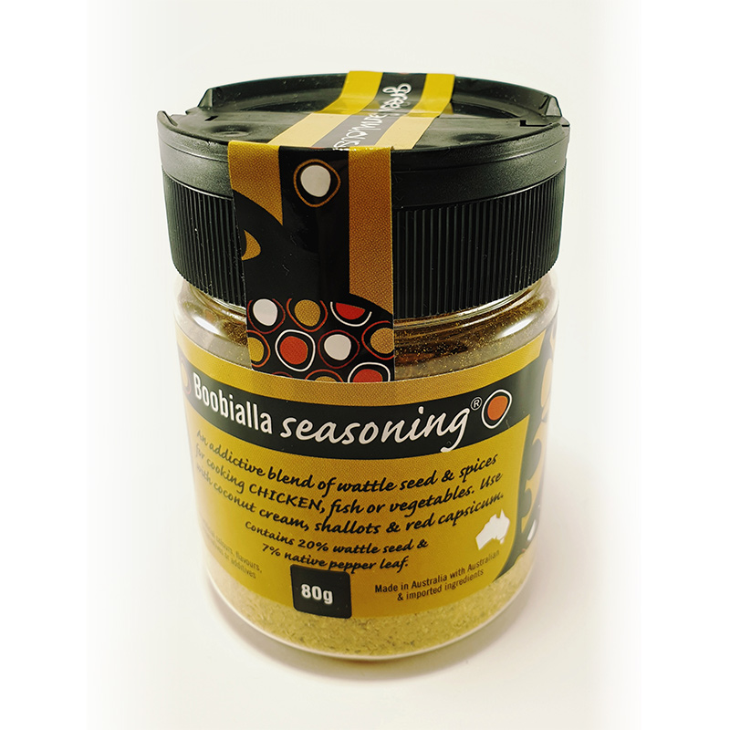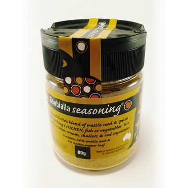 Dried roasted wattle seeds along with pepperleaf form an integral marriage with traditional spices, to give a tasty seasoning.