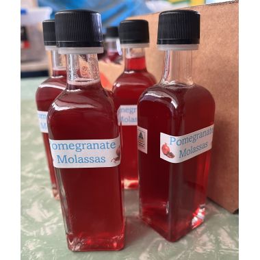 Our biodynamic farms’ own pomegranates picked in autumn are hand squeezed, extracting all the goodness of these superfoods. This concentrated deep purple juice we then boil down over our wood stove, add lemon juice and sugar to create a thick molasses. There’s many uses to liven up your creations. Pouring consistency; so it’s ideal to drizzle over ice cream, into cocktail’s, garnished onto roast meats or enjoyed as is with soda water!