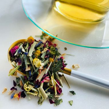 45 grams, premium organic loose leaf herbal tisane that may be restorative and calming for new parents.