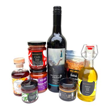 All your staples are included: MCarthy's Orchard Monkey Bum Shiraz, Matchetts Olive Oil, Matchetts Chilli Jam, Spice Girlz Dukkah, Spice Girlz Hakuna Matata, Port Willunga Fine Foods Frivolity, Onion Jam and the all important Ginny Pig Gin.