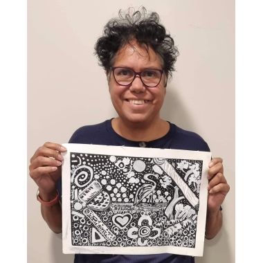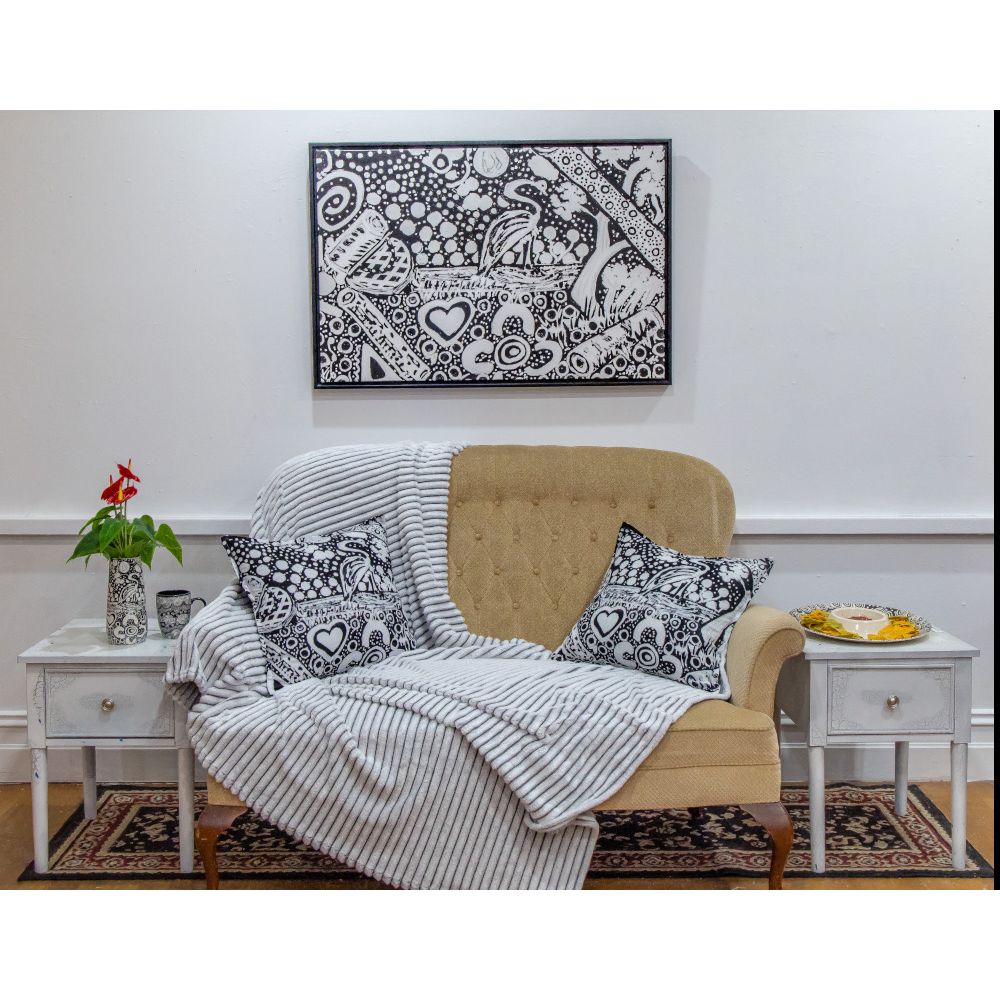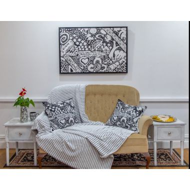 Features the artwork from Rhubees’s original painting “My Happy Places”