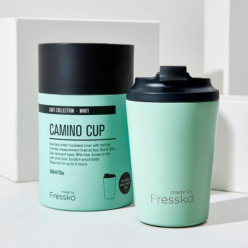 Everyone’s favourite reusable Fressko takeaway coffee cup with spill-proof, lock lid.
