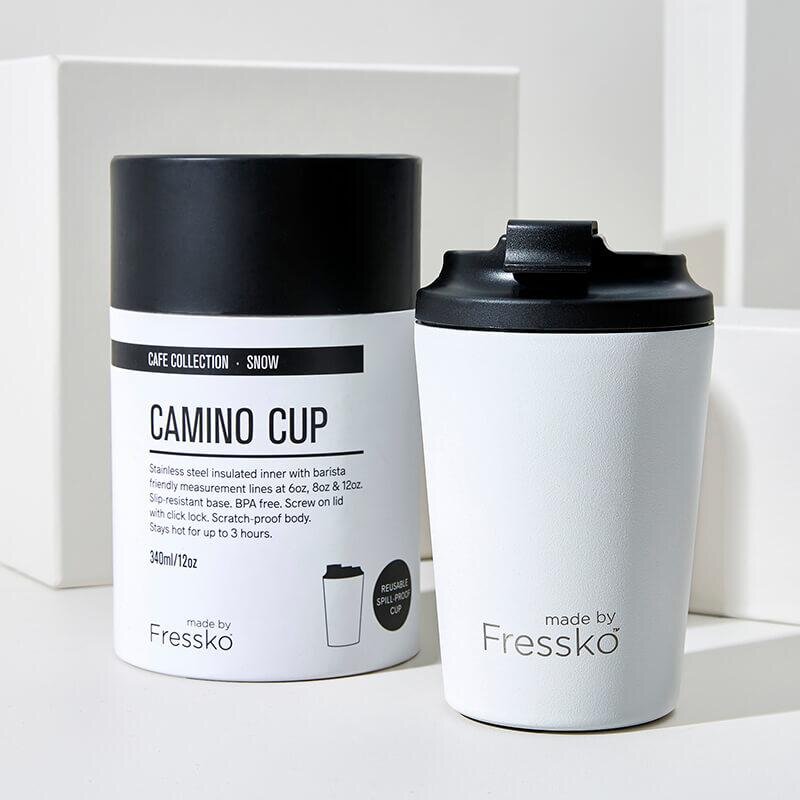 Everyone’s favourite reusable Fressko takeaway coffee cup with spill-proof, lock lid.