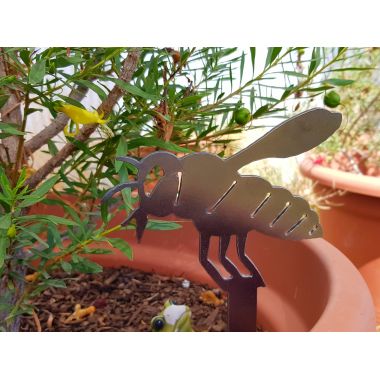 This beautiful bee garden stake measures 133mm wide x 107mm high (plus 123mm stake on legs).