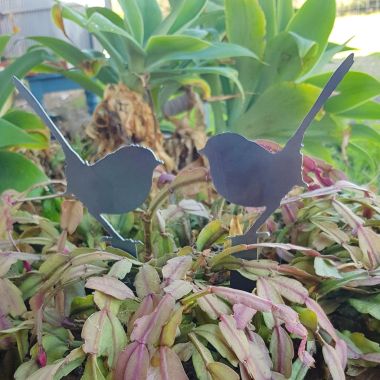 This wonderful wren garden stake measures 107mm wide x 125mm high (plus 130mm stake on foot).
