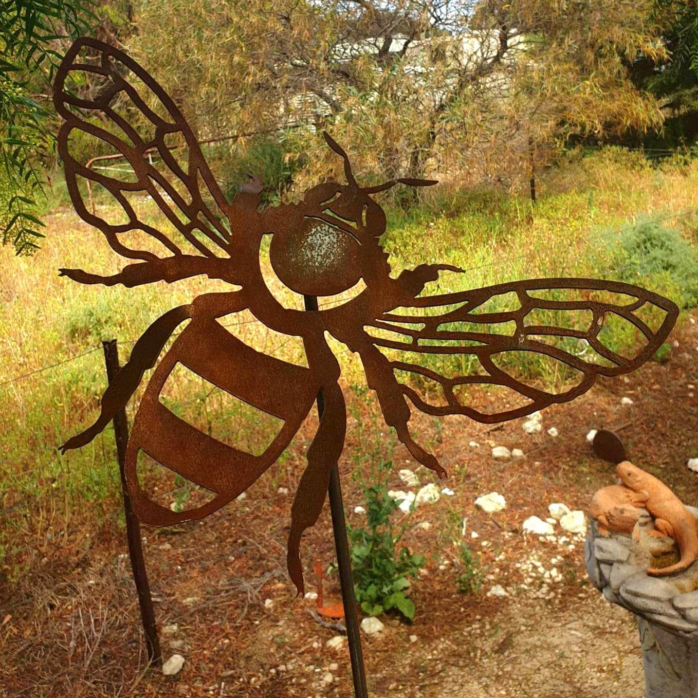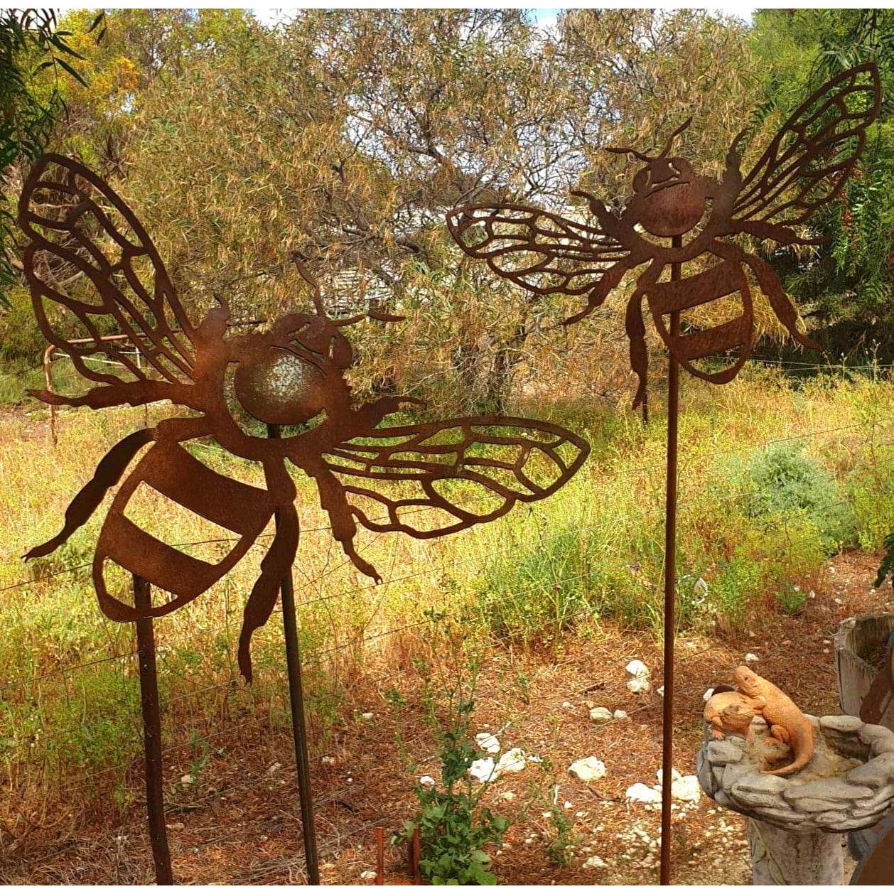 This beautiful 3D Bee garden stakes measure 490mm wide x 340mm high (Bee only). This detail design is welded onto a rod either 800m high, 1100mm high or 1300mm high, you choose!