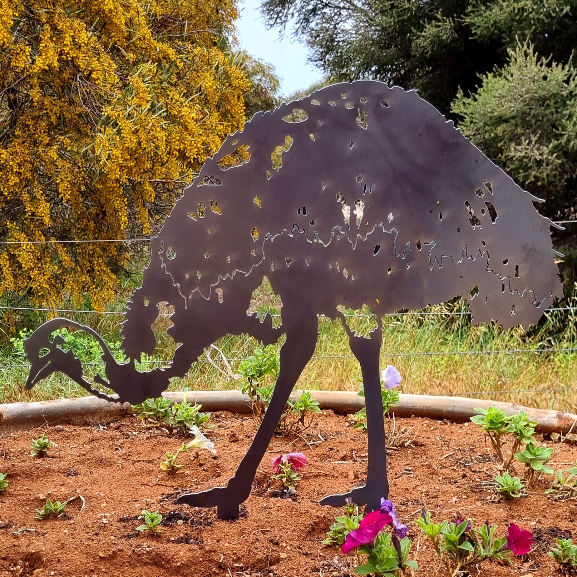 It has been designed and made by South Australians, created in 2mm mild steel which will naturally go Rusty unless you customize it by painting it! Don't forget to get some Emu chicks to complete the family in your garden!