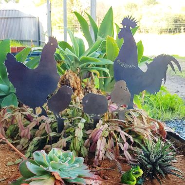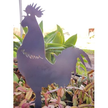 This remarkable Rooster garden stake measures 230mm wide x 289mm high (plus 200mm stake on foot).