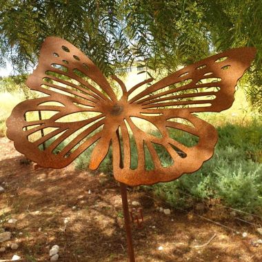 This beautiful 3D Butterfly garden stakes measure 370mm wide x 280mm high (Butterfly only). This detail design is welded onto a rod either 800m high, 1100mm high or 1300mm high, you choose!