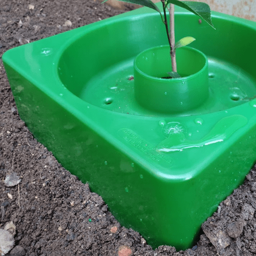 GrowWell™ inserts into the soil utilising the natural soil properties whilst conserving water and focussing nutrients via its innovative well design. It promotes an easier plant maintenance routine including significantly less weeding and soil preparation. Over time, you will develop an easier watering schedule as you notice the water being conserved under the base of GrowWell™ with evidently high soil-moisture retention.