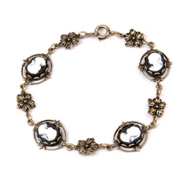 Ornate antique gold finish bracelet featuring traditional Cameos.