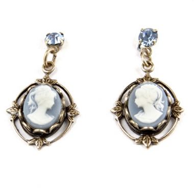 Beautifully designed ornate earrings in antique gold finish with traditional Cameo detail