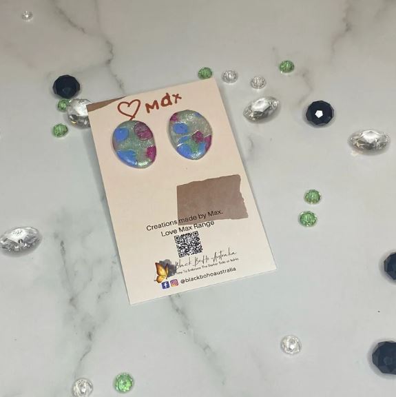 Made by Max locally here in Adelaide from polymer clay with lots of love and care.Please remember he is only 8 so some slight imperfections make this item all the more special. If you want to read a little bit more about Max's story you can read that on the Black Boho Australia website. These earrings are perfect for any occasion. Size - approx 2cm diameter NOTE: Colors might be different due to your display settings, They can have small imperfections, Lightweight and durable, if taken good care of, Made with surgical steel Open to custom orders, no challenge is too great or small for Max RETURN: Due to hygiene reasons, I am not able to accept returns. Please contact me if you encounter any kind of problem with the earrings!