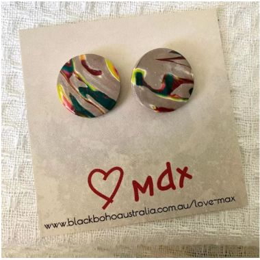 Made by Max locally here in Adelaide from polymer clay with lots of love and care.Please remember he is only 8 so some slight imperfections make this item all the more special. If you want to read a little bit more about Max's story you can read it on the Black Boho Australia website. These earrings are perfect for any occasion. Size - approx 2cm diameter NOTE: Colors might be different due to your display settings, They can have small imperfections, Lightweight and durable, if taken good care of, Made with surgical steel Open to custom orders, no challenge is too great or small for Max RETURN: Due to hygiene reasons, I am not able to accept returns. Please contact me if you encounter any kind of problem with the earrings!