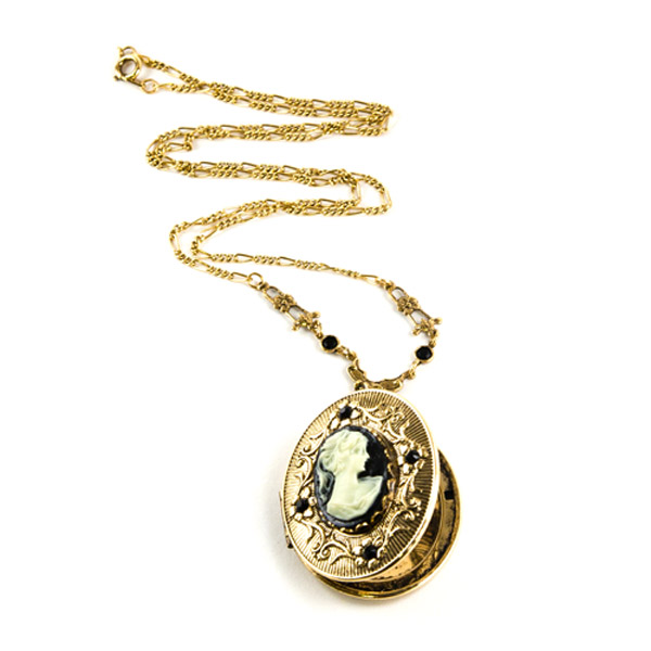Beautiful traditional Cameo locket with opening hinges for a photo or lock of hair.