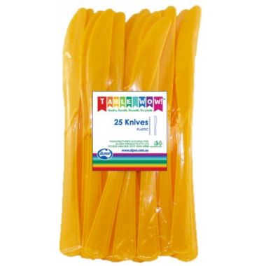Deluxe Cutlery! 190mm KnivesPremium plastic tablware. Quality, Durable, Reusable & Recyclable. Available in bright, retail hangsell packaging with brilliant colour co-ordination across the full range of plastic tableware, tablecovers and napkins!