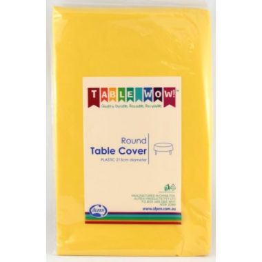 Round: 213cm diameter. Quality, Durable, Reusable, Recyclable! Alpen's plastic tablecovers are premium quality and thicker than the competitors! Colour match perfectly across the range and rectangle, round & roll options! As well as colour co-ordinating with our napkins and plastic tableware!