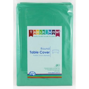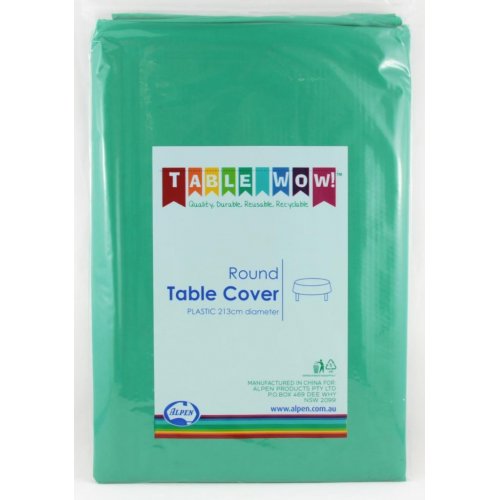 Round: 213cm diameter. Quality, Durable, Reusable, Recyclable! Alpen's plastic tablecovers are premium quality and thicker than the competitors! Colour match perfectly across the range and rectangle, round & roll options! As well as colour co-ordinating with our napkins and plastic tableware!