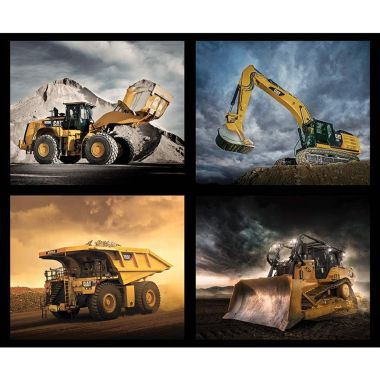 Caterpillar Pillow Panel PP10992 great photo prints of a loader, excavator, dump truck and bulldozer. 100% cotton 92cm x 110cm
