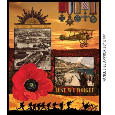 Remembering 7117/Q featuring medals, 110cm x 90cm 100% Cotton